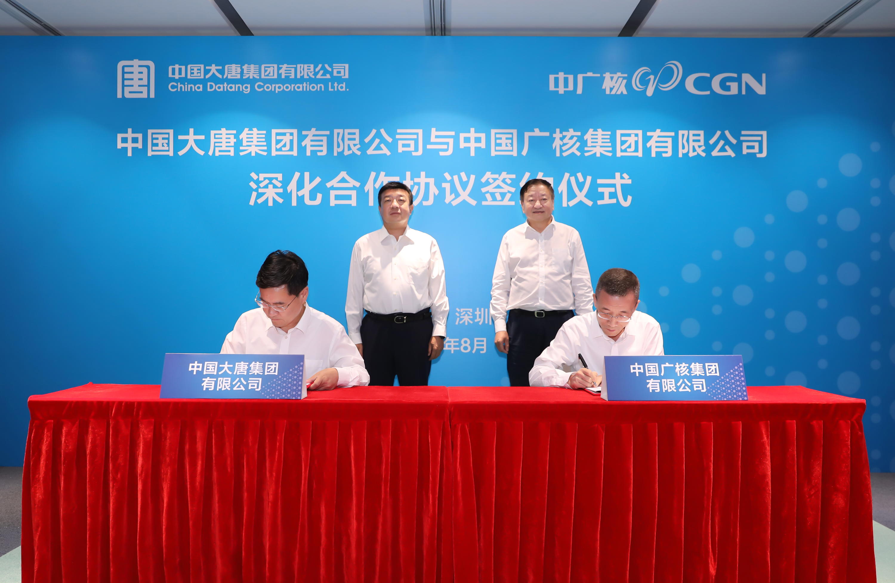 本网讯 8月6日,中国大唐集团有限公司与中国广核集团有限公司在深圳签署深化合作协议。签约前,中国大唐党组书记、董事长吕军与中广核党委书记、董事长杨长利围绕核能、新能源、国际业务合作等进行深入座谈交流。