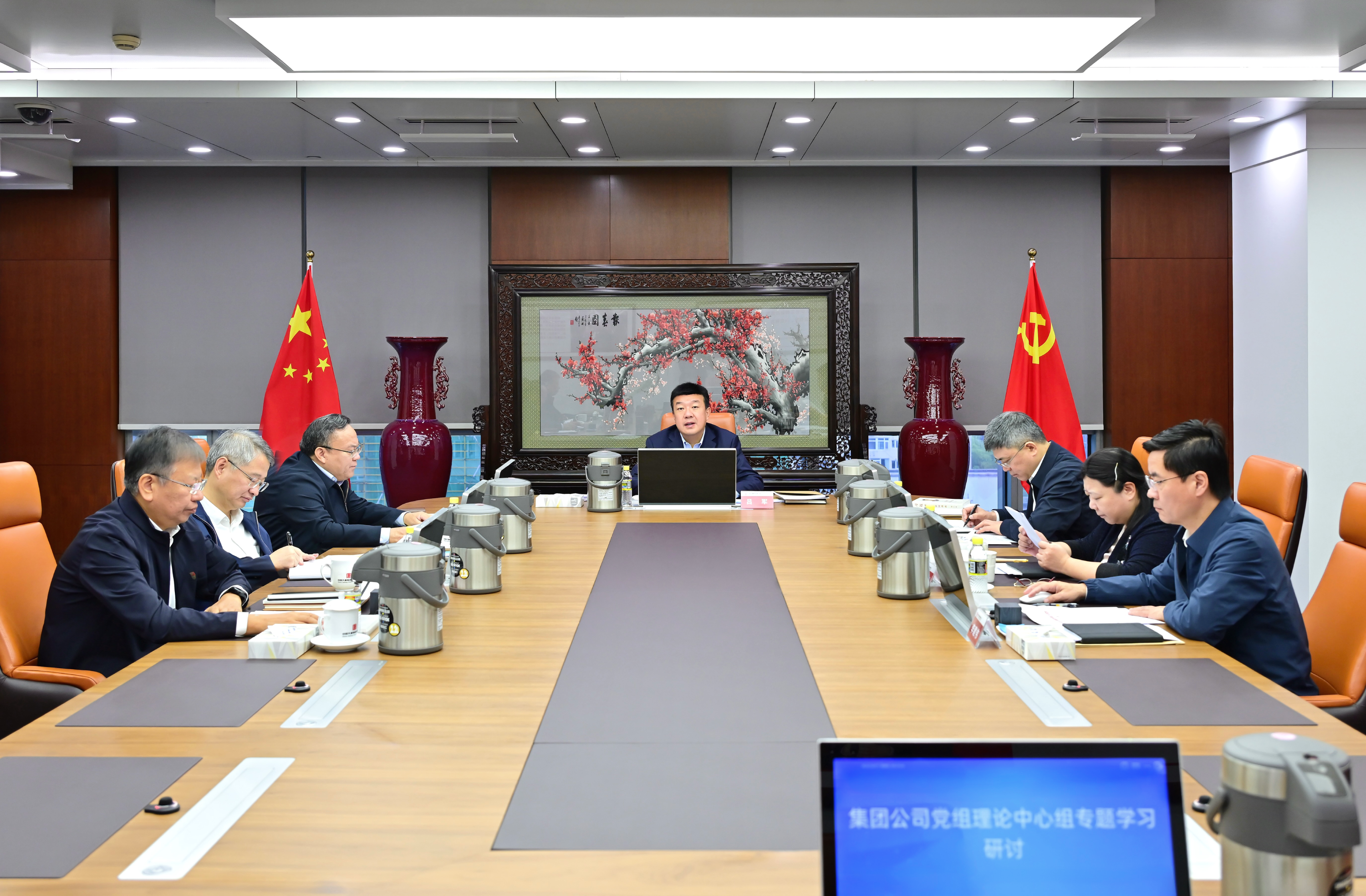 集团公司党组书记、董事长吕军主持学习并讲话,集团公司领导李向良、余波、王瑛、陶云鹏、李建伟、王海腾参加专题学习研讨。